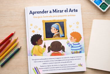 Una guía ilustrada para pequeños artistas. Esta guía te ayudará a observar imágenes con atención, imaginar historias y crear como un verdadero artista. Cada página es una nueva aventura para descubrir el mundo del arte.